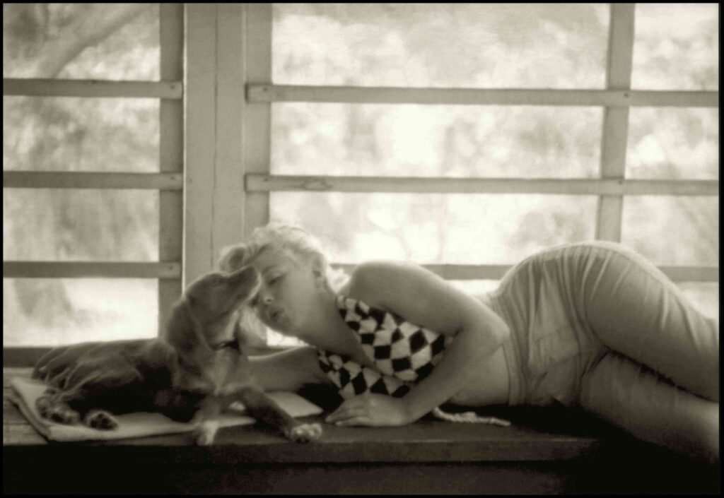 Another 1952 photo shows Monroe cuddling up to a furry friend in Long Island, New York.