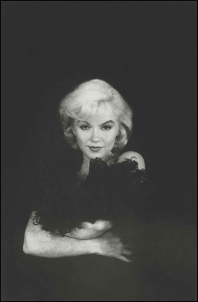 A studio photo session, Arnold writes in the book, “provides the greatest chance for control. One can plan one’s own lighting, work to one’s own time clock, shoot and reshoot, change the subject’s hair style, change or add or subtract clothing.” Here, Monroe poses with a feather boa in a never-before-seen outtake from a 1960 shoot to promote The Misfits.